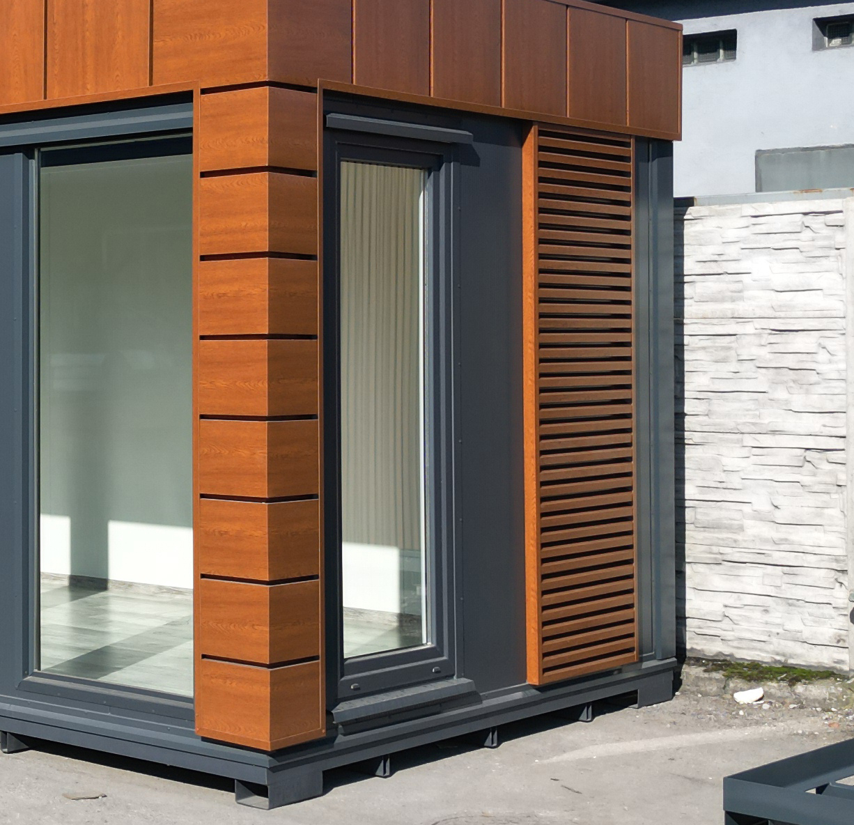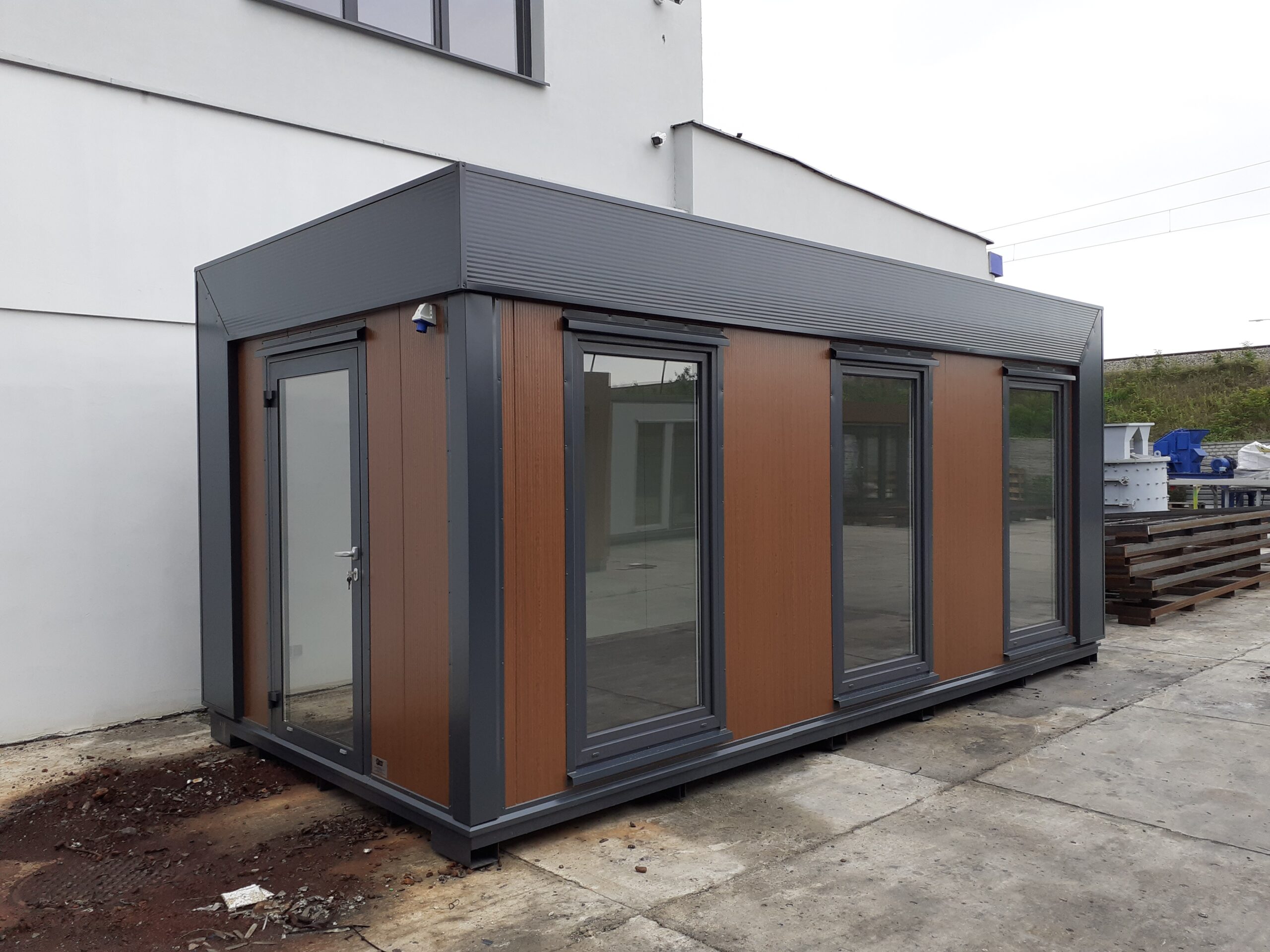 Isolierter Pavillon aus Sandwichelementen der Klasse 1 mit einer Innenhöhe von 2,50 m und einem Gefälle von 2,40 m.