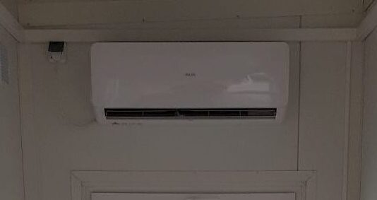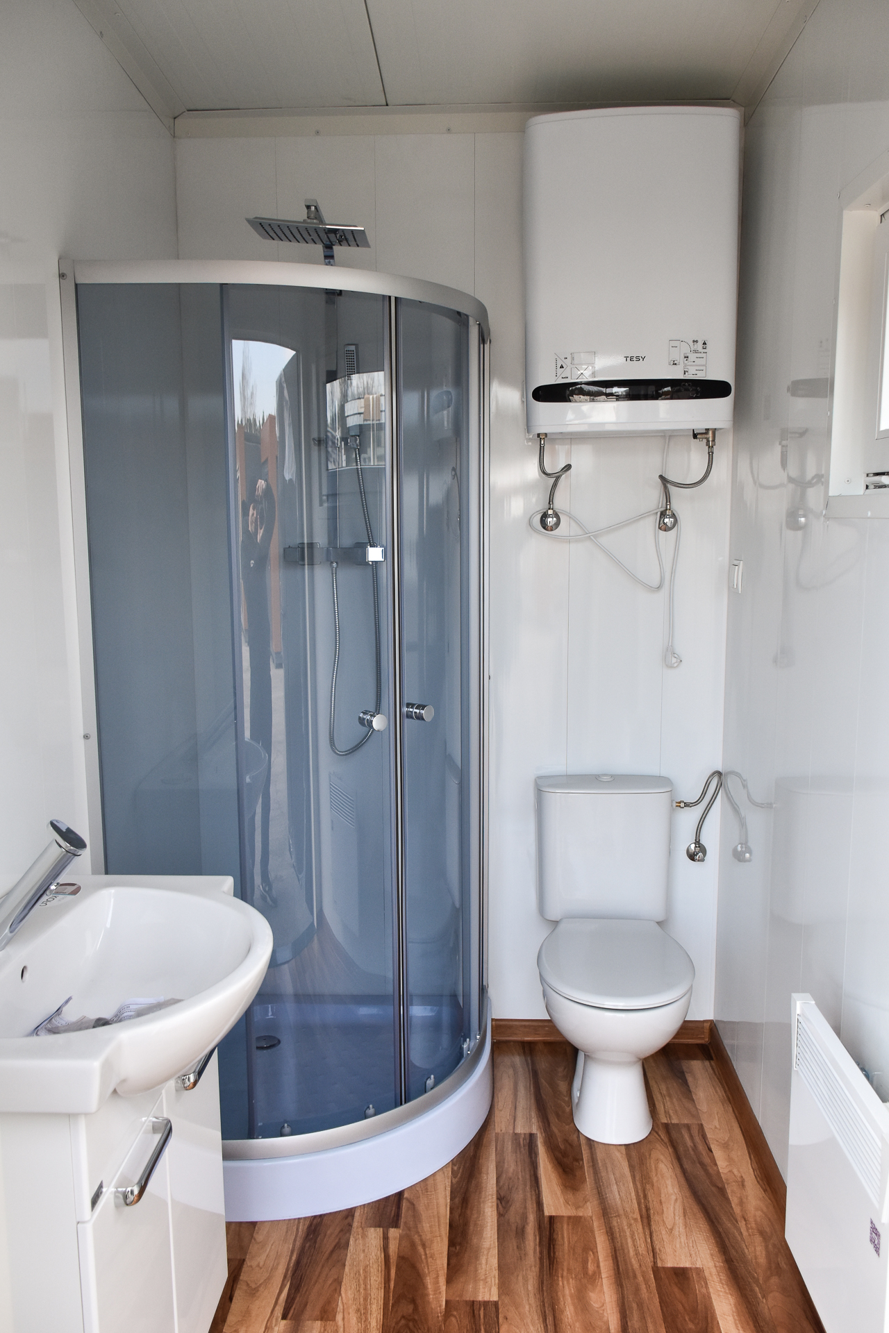 Lampen, 1 Schalter, 2 Doppelsteckdosen, Sicherungskasten, Lüftungsgitter, 2000 W Heizung, Netzanschluss.